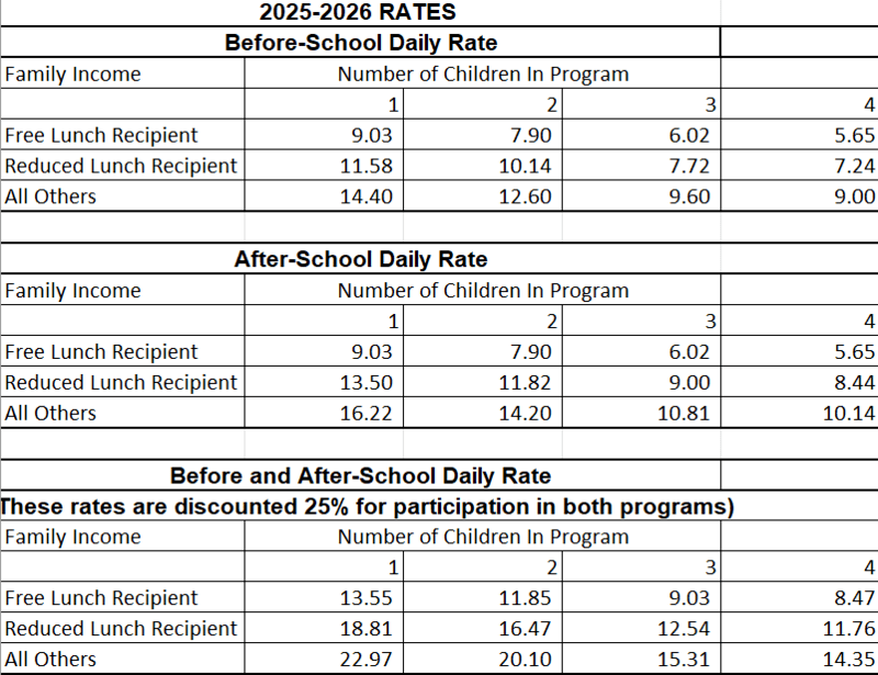 Registration will begin on August 4, 2025 at 9AM. Applications are approved on a first come first serve. You must register for the Before and After Care every year.